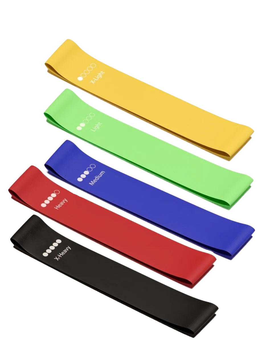 Любая фитнес резинка (мягкая или средняя), лучше всего подойдет фитнес лента средней жесткости.